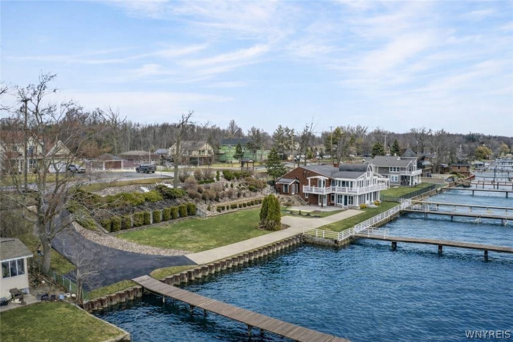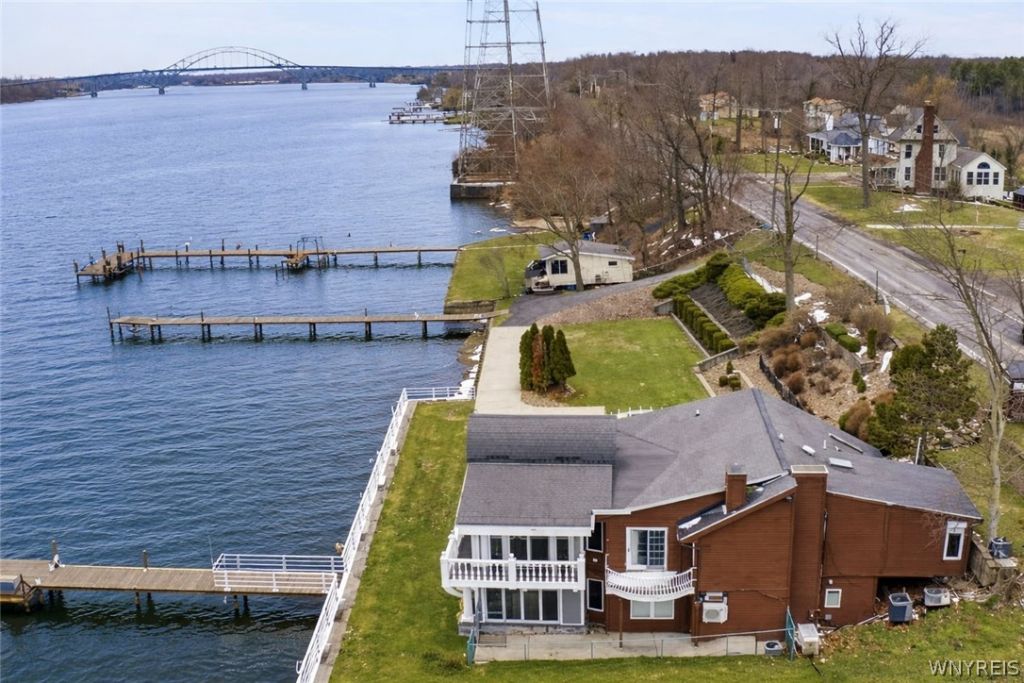 When you see the view from the house on the water you will fall in love with this one of a kind property. Unobstructed views create a very private and amazing oasis that is hard to duplicate any where else on Grand Island. 3 parcels make up this almost 3 acre property and gives you over 200' of water frontage on East River Rd. Main house is over 3,000 sq ft with 2 full master suites and lots of space inside and out to entertain. Garage, across River Rd, has an office rec room with 1 car attached garage and a full bath, below has additional space for 4 cars or all of you seasonal storage needs. Further back on the vacant land is a barn that was used as a horse stable and workshop. The property is meticulously maintained and truly one-of-a-kind. Has been owned by the same family for almost 50 years. Updates throughout the entire house but some include Kitchen in 2022, 1st floor master suite 2022, HVAC upgrades with radiant heat 2022 office 2023. So many possibilities for this property - 3 full docks with room for several boats and other watercrafts and a large yard that can accommodate any size party. The beautifully landscaped Stone staircase and the lower driveway with electric gate. This driveway, provides truck and car access for the house with a turn around, as well with a 2 car parking area on the river side.