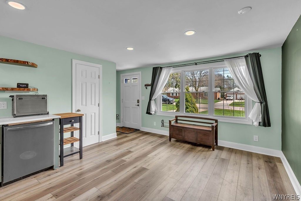 Rare find 3 Bedroom Ranch in Orchard Park! The Remodeled Open Floor Plan was finished in 2023. Luxury Vinyl Flooring in the Large 33 x 13 Kitchen that has a built-in coffee bar and features custom made table top and shelving built with black walnut from a backyard tree! Additional 17 x 10 area listed as Dining Room is L-Shape extension of Kitchen for more Possibilities! All Appliances are Included; Washer/Dryer and Stove from 2020, Refrigerator in 2022, and Dishwasher & Microwave in 2023. Family Room with Gas Fireplace (2022) for Cozy Comfort! Mechanical Updates include Tankless HWT in 2025, 18KW Generac Whole House Generator in 2023, Electric Service Upgrade to 200amp in 2023, and Tear-Off Roof Replacement in 2022. Central Air offers you Summer Comfort or you can enjoy the 16' x 32' Inground Pool featuring an Upgraded Heater and Self-Cleaning system in 2021 and a Liner that was replaced in 2022. The Concrete Pad and Pool Shed are from 2025! Located on a deep 305 ft deep yard, it also features a wood deck. Lots of Storage Space in the Large Full Basement!