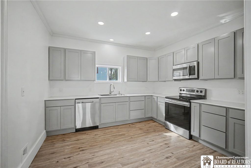Fully remodeled 3 bedroom 2 full bathroom situated on a quiet street. Home underwent extensive renovations. Exterior has new roof, vinyl siding and all new windows (2025). First floor features a large living room, formal dining room, brand new kitchen with custom cabinets and new counters, first floor bathroom and first floor laundry room. Second floor offers 3 large bedrooms with all new carpeting, fully remodeled bathroom. All new paint, flooring and fixtures throughout.
